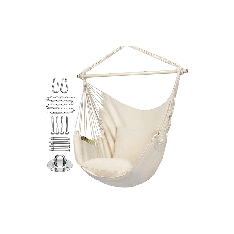 Easy to install, this stylish hammock swing chair comes with Stainless Steel Ceiling Mount and a stainless steel chain, which can be hung anywhere, you can easily move it anytime, anywhere. Just find a branch, beam or hammock frame, and it’s easy Install it